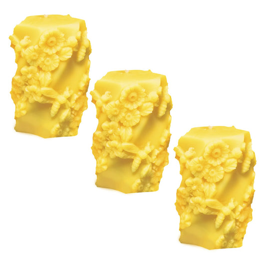 Bienenwachskerze Stumpe 6eck Blumenranke & Libelle