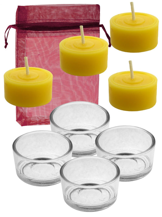 15 Teelichter in 15 Glasschalen aus 100% reinem Bienenwachs